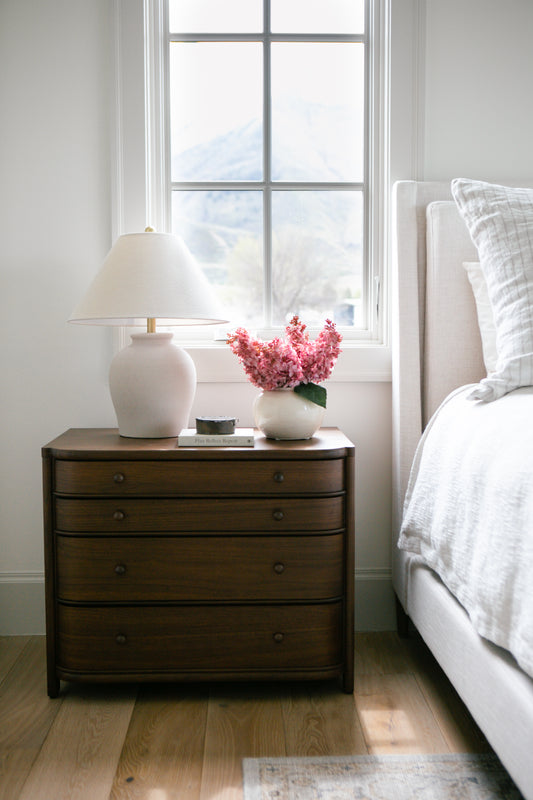 Owner's Suite: Nightstands, dresser, bedding and pillows